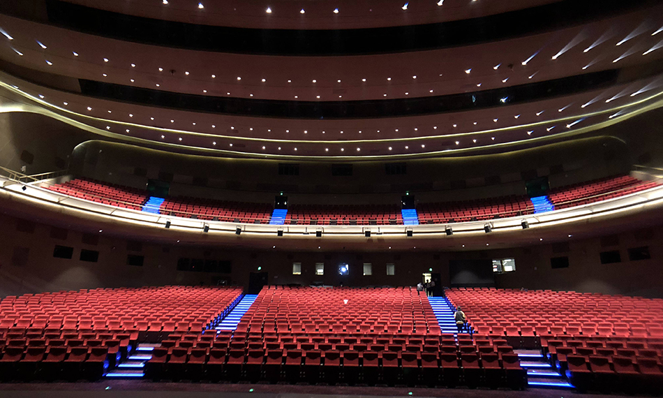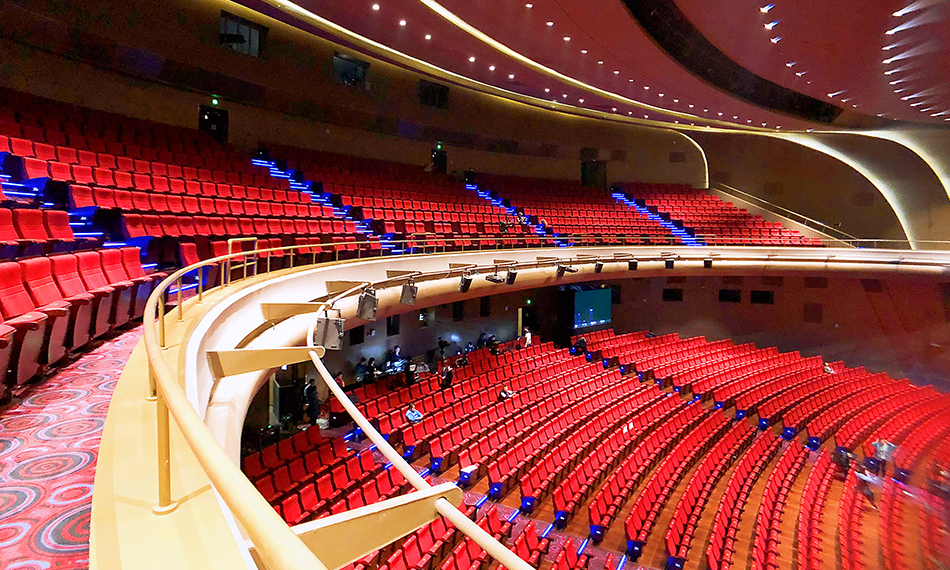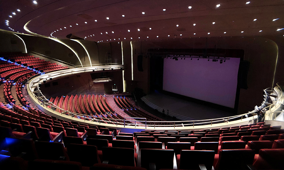 位于青島市黃島區(qū)西海岸經(jīng)濟新區(qū)中央商務區(qū)內(nèi),總建筑面積約2.4萬平米,包含一個1970座的特大型劇院及設施的配套空間。大劇院是為國際電影節(jié)打造的文化建筑,舉辦一年一度的國際電影節(jié),成為電影節(jié)開、閉幕式及頒獎典禮的圣殿。大劇院需滿足大型文藝演出、現(xiàn)場交響樂演奏、全景聲電影放映的需求,這就要求大劇院擁有三套不同的聲學系統(tǒng):現(xiàn)場演出擴聲系統(tǒng)、全景聲電影還音系統(tǒng)、電子可變混響系統(tǒng)。仁歌技術團隊經(jīng)過精心設計、制作,實現(xiàn)了三套系統(tǒng)既可以獨立工作,又能夠在不同使用需求時系統(tǒng)的智能結(jié)合。