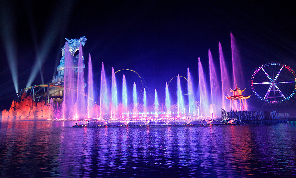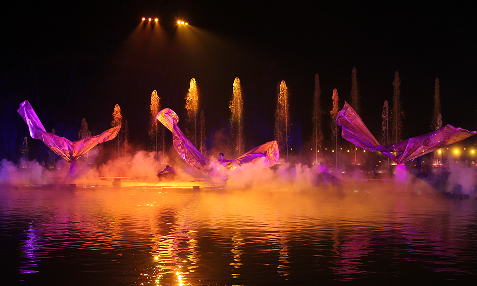 合肥萬達主題樂園是合肥萬達城的重要組成部分,占地40公頃,園內(nèi)分為徽州古韻區(qū)、梨園春秋區(qū)、歡樂水鄉(xiāng)區(qū)、巢州古城區(qū)、淝水之戰(zhàn)區(qū)和夢蝶仙境區(qū)。仁歌承建了主題樂園里面淝水劇場(2000座)、夢蝶劇場(525座)、大湖秀、花車巡游等區(qū)域的音響、燈光、視頻設(shè)備一體化工程。其中大湖秀更是在大型水面上以白龍島為背景,結(jié)合安徽著名的巢湖文化黃梅戲為主題,融合了人、水、聲、光、電等元素的實景演出,采用了演藝級別舞臺燈光、音響、投影等專業(yè)設(shè)備。自項目竣工開園以來已為近百萬觀眾奉獻了精彩的視聽盛宴,帶動了當(dāng)?shù)匚幕糜萎a(chǎn)業(yè)的發(fā)展。